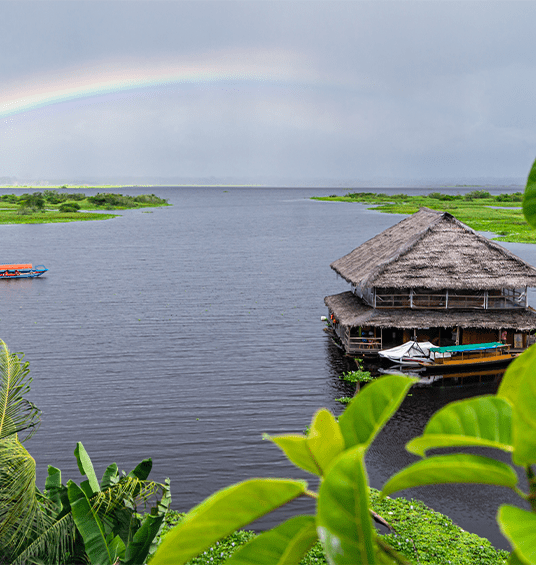 This morning after breakfast, our Amazon adventure begins with a flight to Iquitos, where we'll be greeted upon arrival. From here, we'll be transferred to the port and embark on a speedboat journey up the Amazon River, taking in the scenery along the way. After a three-hour ride, we'll arrive at our accommodations, where we'll have time to settle in and get acquainted with the facilities.