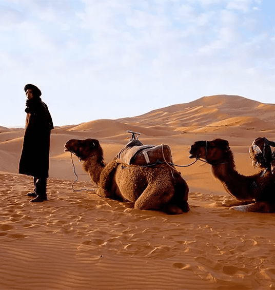 From here, you will complete the final leg of the journey to the big dunes of Erg Chebbi near Merzouga. Here, you will transfer to your next mode of transportation, a camel, and begin your camel trek into the dunes to your luxury Berber camp for the night. Dinner will be served at camp followed by traditional music. After the entertainment, the lights will be turned off and if it is a clear night, you’ll have the opportunity to gaze at the gazillion stars in the desert night sky. When you are ready, you can retire to your cozy and comfortable tent for a good night’s sleep.
