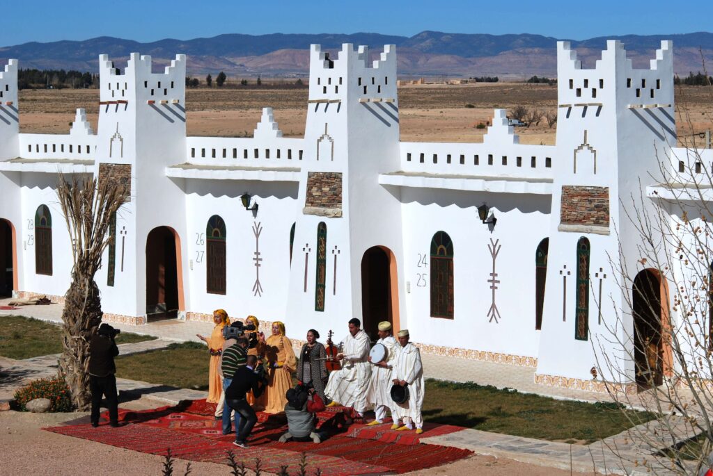 As you cross the high plains between the Middle and High Atlas Mountains, you’ll arrive at your accommodations for the night. Upon arrival, you’ll be welcomed with traditional Moroccan tea before stretching your legs with a visit to the nearby ecological park. Later, enjoy a relaxing evening with dinner at your accommodations—where, if you’re in the mood, you might even stumble upon a lively gathering at the bar!
