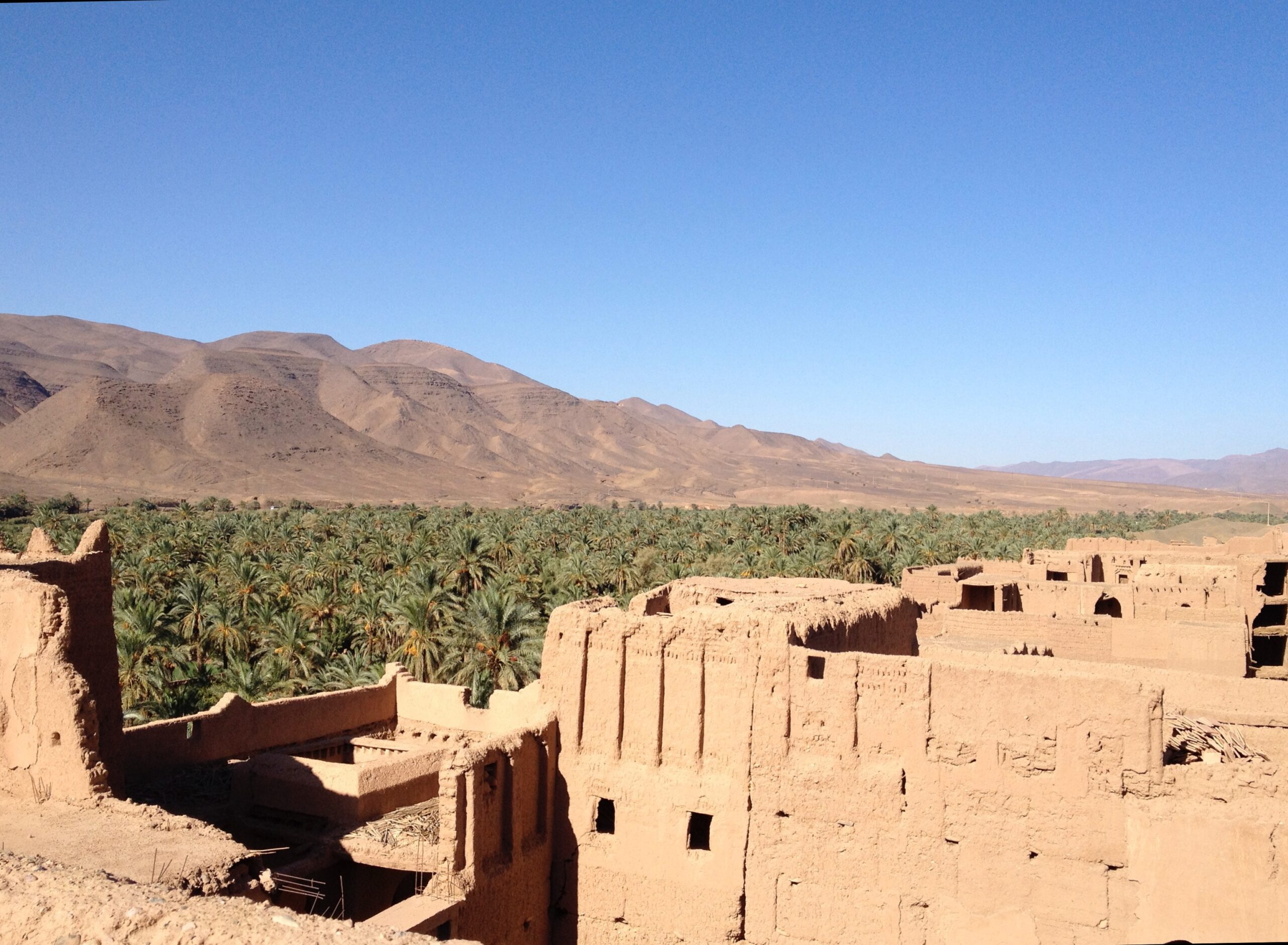 Once you reunite with your driver, you’ll bid the desert region au revoir and make your way into the Draa Valley of Morocco. This fertile river valley located in the Saghro (or Black) Mountain range is known as the Valley of a Million Palms and it is easy to see why. Here you will come upon Kasbah Tamnougalt, another important stop along the old salt caravan route. Although no one knows exactly when this was built, it dates back to at least the 18th century. Parts of the ksar (collection of kasbahs) have melted away with the rain over the centuries, but parts of it are currently being restored. You’ll have a guided visit of the Kasbah and the adjacent gardens. After your tour, you’ll make your way to your nearby accommodations where you will have a chance to relax before dinner is served.